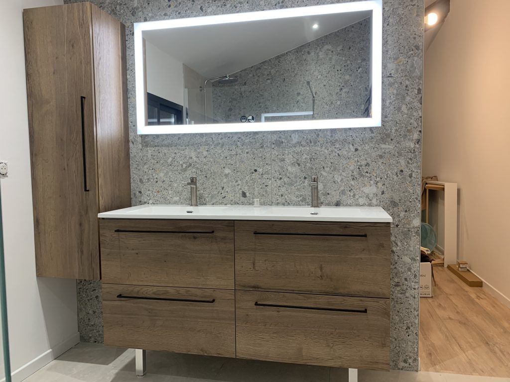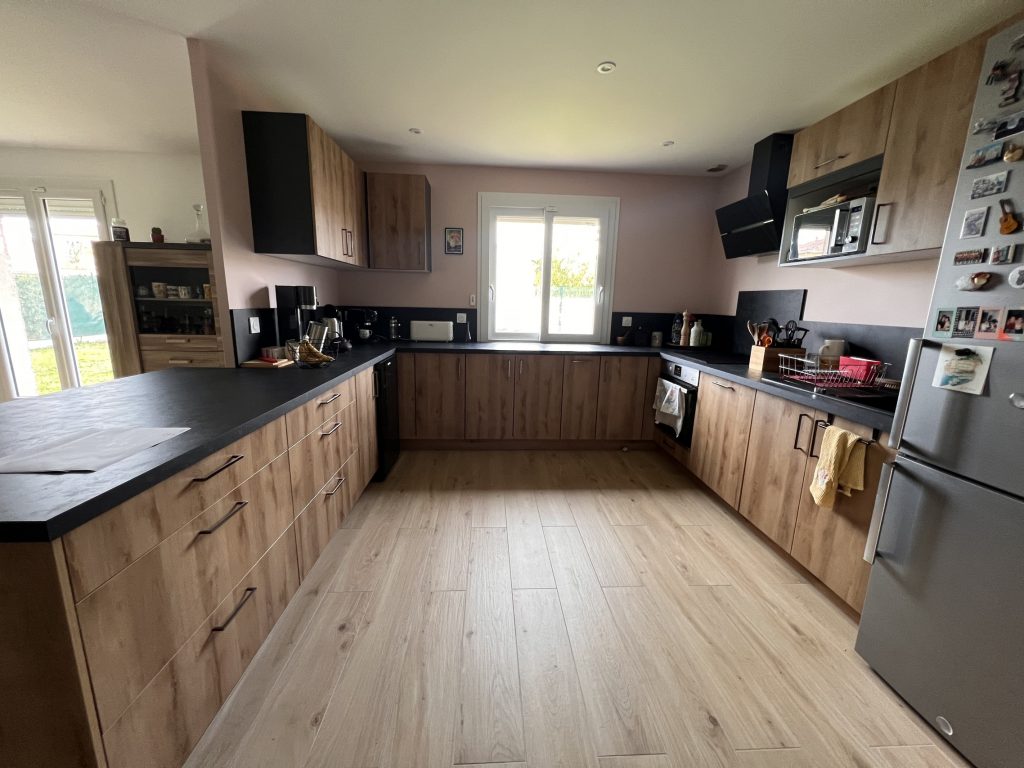 Rénovation complète d’une cuisine moderne et fonctionnelle à Saint-Alban L’objectif de cette rénovation était de créer un espace à la fois esthétique et pratique, répondant aux besoins du quotidien. Nous avons opté pour un design contemporain associant des façades en bois naturel à un plan de travail noir mat, apportant un contraste sophistiqué et intemporel. L’agencement en U maximise l’espace et favorise une circulation fluide. Les touches de noir, notamment au niveau des poignées et des crédences, viennent souligner le caractère raffiné de cette cuisine. Vous avez un projet de rénovation ? Faites confiance à ARKHOS Maîtrise d’Œuvre pour transformer vos espaces selon vos envies et vos besoins. Contactez-nous dès maintenant pour un accompagnement sur-mesure ! Un projet rénovation ? Contactez-nous